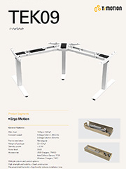 TEK09为一款三支桌脚配置,形式为120度的电动升降桌框。