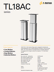 TL18AC是TiMOTION (第一传动) 开发的立柱式产品之一,适用于医疗或工业环境中,如 升降工作桌,萤幕或电子白板的设计。 TL18AC具备铝挤型方型外管。不需要透过控制盒, 有AC电源孔可直接接上电源,连接电脑,电视或其它设备。