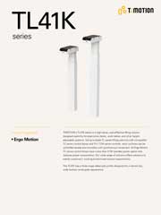 堤摩讯 (TiMOTION)的TL41K系列是特别为办公桌家具及工作桌而设计的高性价比桌脚立柱。我们的桌脚立柱产品可搭配相关控制盒及手控器,能进行安静的升降动作和桌脚同步控制。所有办公工作环境应用所使用的控制盒均具备0.1W的待机功耗,兼具环保和节能。客户可根据的设计需求随心选择桌脚立柱系列的任一产品。