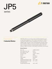 堤摩讯 (TiMOTION)所开发的JP5是一支直线型的线性推杆,主要使用在低负载的工业应用中,可承受的负载为1,500N。它非常适合需要较小安装空间的产品应用中。霍尔传感器 (选配)可支持同步运作及位置讯号的回馈。此支线性推杆的防水等级最高可达IP69K (选配)。