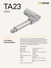 TA23 是一支安装空间极为紧凑,且主要用于医疗应用中的电动推杆,它能承受较大的负载和较高的速度。控制盒能直接安装在TA23上。其防水等级最高可达IP66W。TA23可搭配霍尔传感器。TA23 也具备手转释放的选项,可运用于医疗吊架应用。