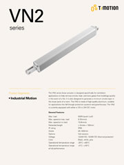 堤摩讯 (TiMOTION) 所开发的VN2系列是专为开窗应用及排烟设备所设计的工业类电动推杆。万一发生火灾,VN2能将烟雾、热气和有毒气体快速地透过开窗器排出。VN2为铝挤型的推杆,适用于开窗器和温室等环境应用。目前VN1有24V与12V两种DC版本。