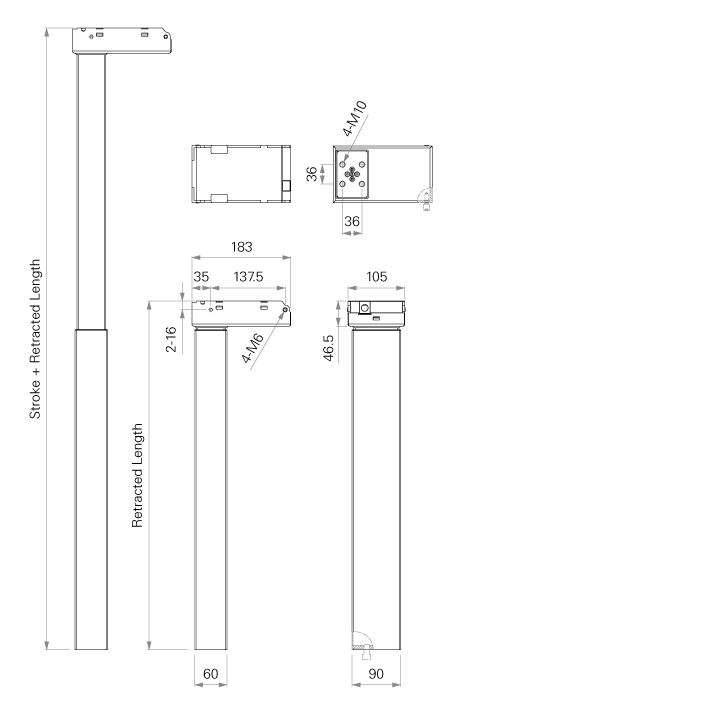 An electric lifting column consists of an electric actuator integrated with a telescopic tube. The actuator provides the push and pull, while the telescopic tube provides the guidance. TiMOTION lifting column series offers reliable vertical movement and allows height adjustment of many industrial, medical, workplace and comfort equipment.
