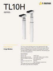 TL10H è una colonna di design, robusta, molto stabile, silenziosa e in grado di sollevare carichi pesanti. Ha le stesse dimensioni e tipologie di fissaggio della TL10, ma è stata progettata per applicazioni che richiedono un'elevata capacità di carico. E' compatibile con le nostre centraline di controllo e con le soluzioni TEK di telai ergonomici della serie Ergo. E'adatta per applicazioni su banchi da lavoro industriali ad altezza variabile, tavoli da imballaggio, piani di lavoro da cucina, banchi da laboratorio o da aula, laboratori farmaceutici, etc.